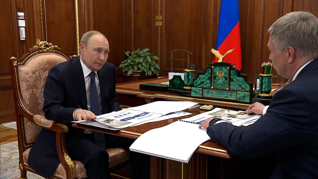 В Кремле Владимир Путин провел встречу с губернатором Ульяновской области Алексеем Русских. Президент заслушал доклад о социально-экономическом развитии региона и поддержал инициативу строительства на базе областной больницы Центра сердечно-сосудистой хирургии. Глава государства также оценил показатели по вовлеченности населения в систематические занятия спортом. Владимир Путин подчеркнул, можно двигаться дальше. Репортаж Артёма Петрова.